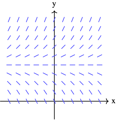 - If the slopes are identical along any vertical line (moving up and down doesn’t change the slope), the differential equation depends only on \(x\) (e.g., \(y' = 2x\)).