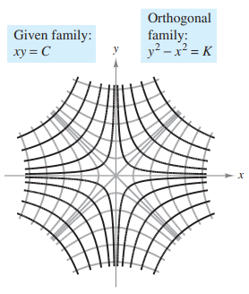 at right angles. Two such families of curves are said to be mutually orthogonal, and each curve in one of the families is called an orthogonal trajectory of the other family. In electrostatics, lines of force are orthogonal to the equipotential curves.