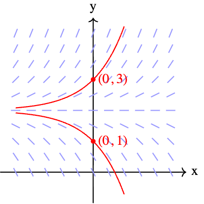 A solution curve of a differential equation \(y'=F(x,y)\) is simply a curve in the \(xy\)-plane whose tangent line at each point \((x,y)\) has slope equal to \(F(x,y)\). This is illustrated in the next example.